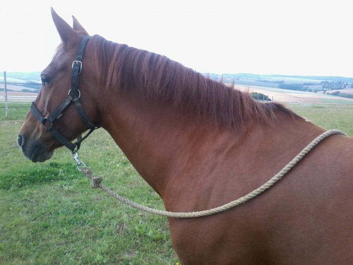 Cours avec Safran, but : être rênes longues le long de la séance, exercice : trotter rênes longues, sauter rênes longues (petite hauteur), génial, à part détente au galop où il chauffait..
