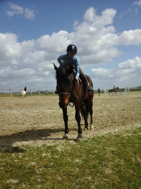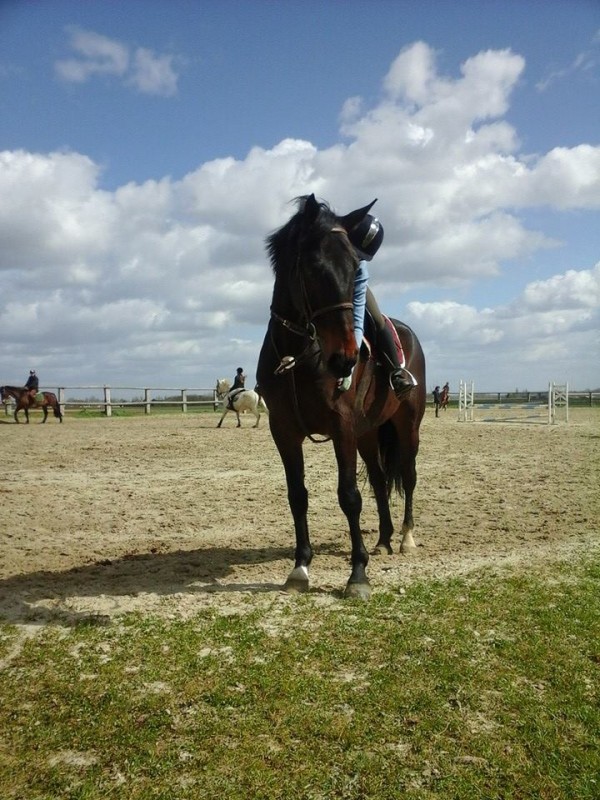A la détente, Safran était parfait, à l'écoute. Au galop aussi, malgré le trotteur d'une amie qui montait avec nous et Pimp qui chauffait un peu. Comparé à la semaine dernière ou il faisait que péter en l'air, là j'ai eu le droit à un seul coup de dos, nous sommes en progression!