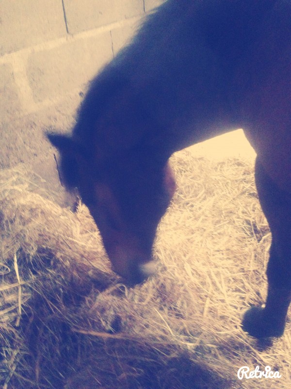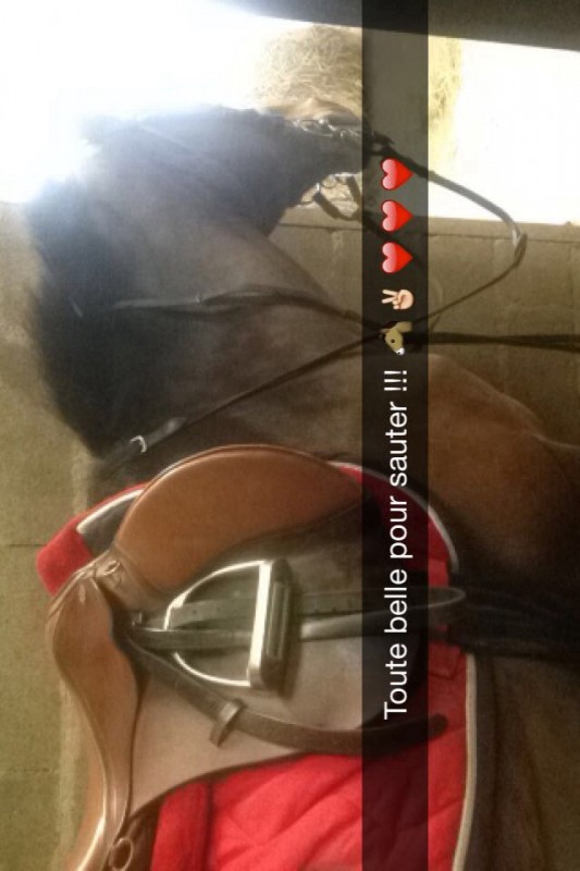 Je commence par un bon pansage puis je décide de tenter de monter ! Donc je la selle et hop on sort. Je monte et je la fais marcher. C'est pas trop mal et pour l'instant j'ai pas mal !