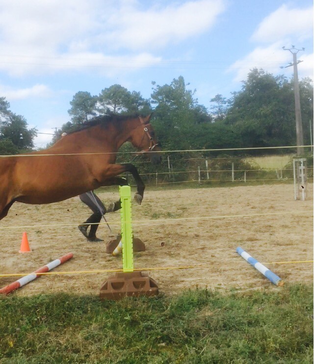 Pour finir on a sauté une petite croix en longe toujours, ca a été une fois que j'ai trouvé la bonne hauteur pour qu'elle lève enfin son popotin.