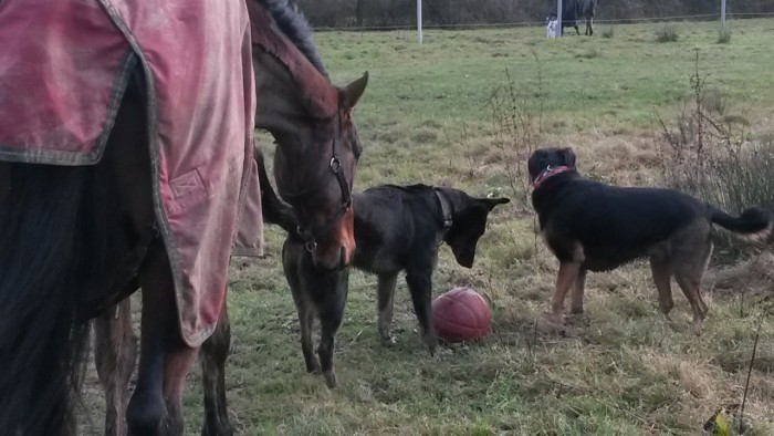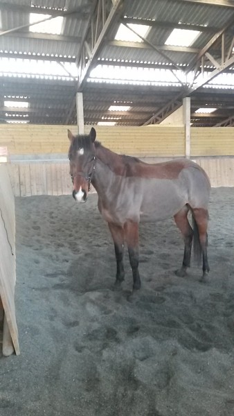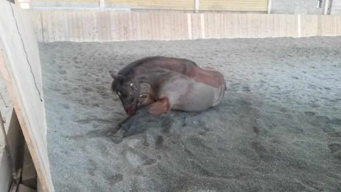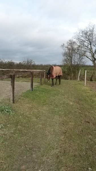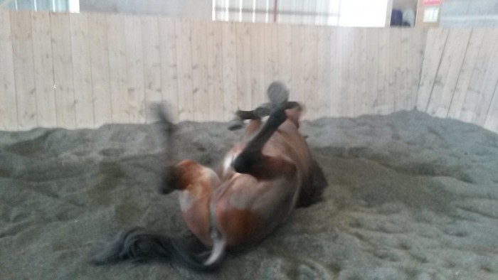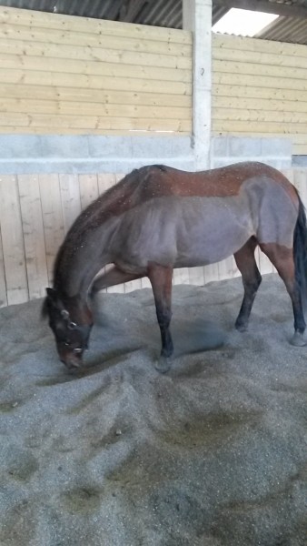 Désert était content de sortir ! A peine sortis de l'écurie, il secouait la tête dans tous les sens et trottinait sur place ^^