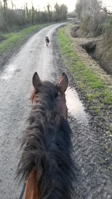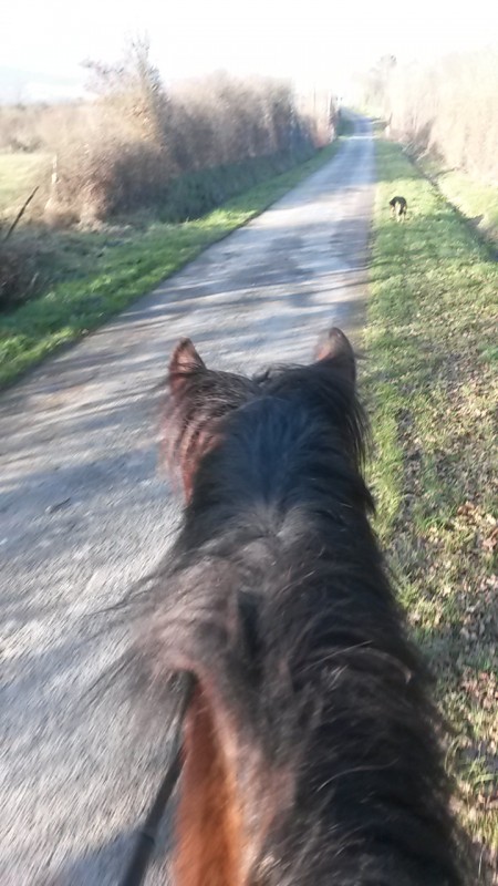 Oui oui, dès la sortie du pré (alors qu'il n'avait RIEN fait), j'ai senti qu'il trouverait le moindre prétexte pour faire le couillon pendant la balade. Bah ça a pas loupé xD