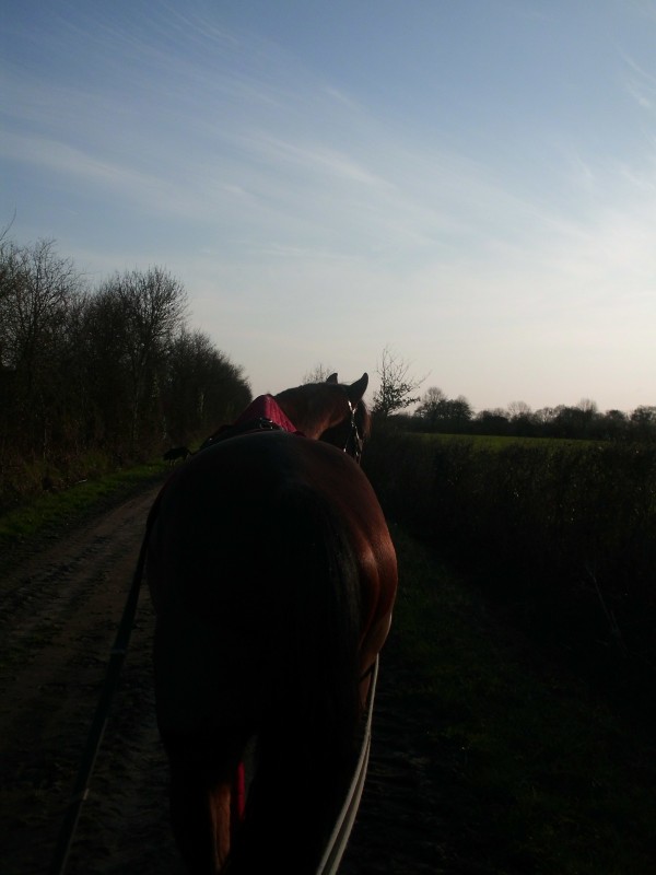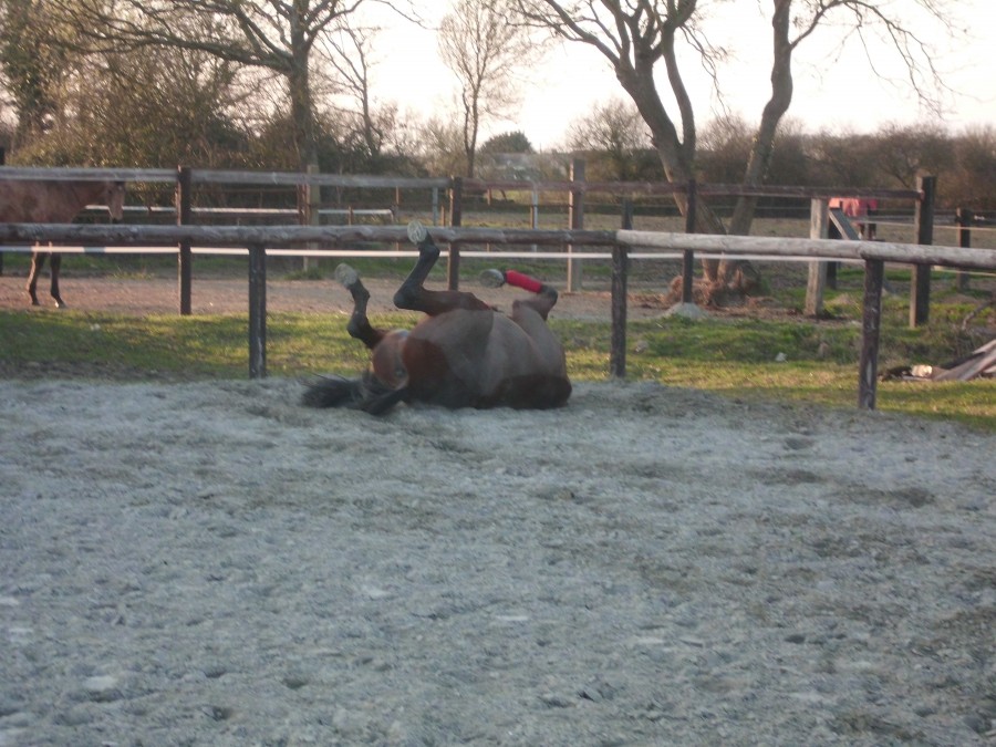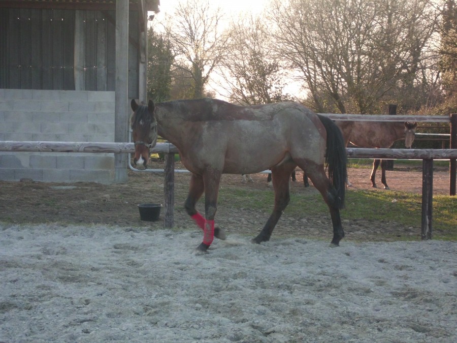 En rentrant, je l'ai mis dans la carrière pour qu'il se défoule un peu et j'ai essayer de bosser le coucher. Cause toujours