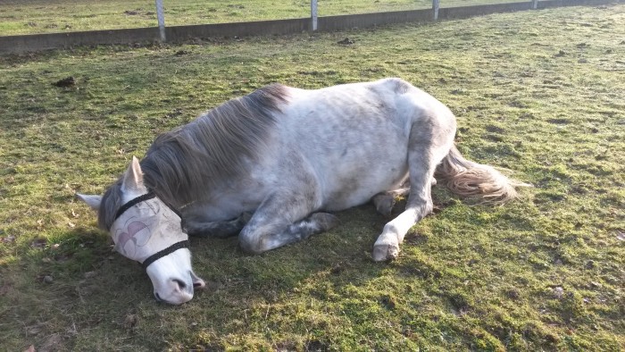 Je passe les détails…Donc vermifuge, visite véto, déferrage…Tout à la suite. Foin à volonté + 6L de granulés (mélangés avec de l’orge et j’en passe) par jour… Je prenais soin de ne pas la monter, mais le véto nous a dit qu’il fallait tout de même la bosser. C’était bien catastrophique… Sans énergie, ayant à peine les bases… C’était décourageant. J’ai monté Sun pour la première fois depuis qu’elle était arrivée fin janvier… Jument déjà habituée au gogue et enrênements en tous genres, et moi simple filet, ça lui à fait drôle. Elle ne faisait que secouer la tête et moi je prenais peur très facilement à l’époque. Donc je l’arrêtais (quelle bétise…). En plus de cela elle était toujours très faible alors juste du pas et du trot correct et j’arrêtais. Déprimant d’attendre sur le moment…