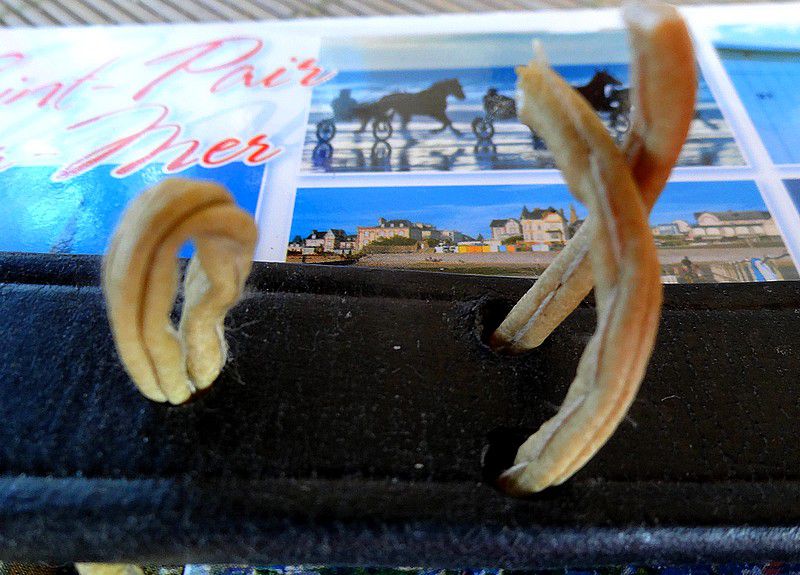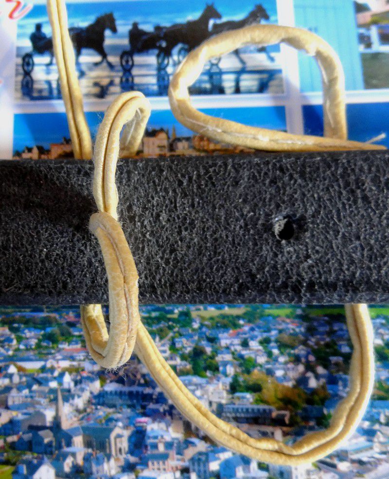 le bridon poney est aussi une récupération aux emmaüs pour 2€, les rênes ont été fabriquées avec des rênes allemandes HS au niveau des cordelettes.