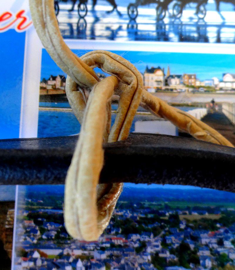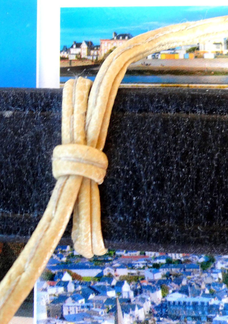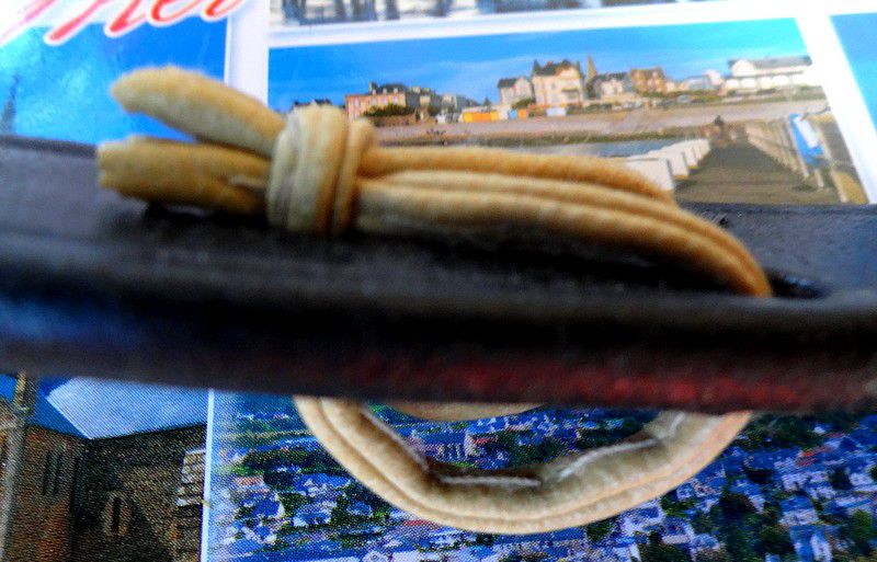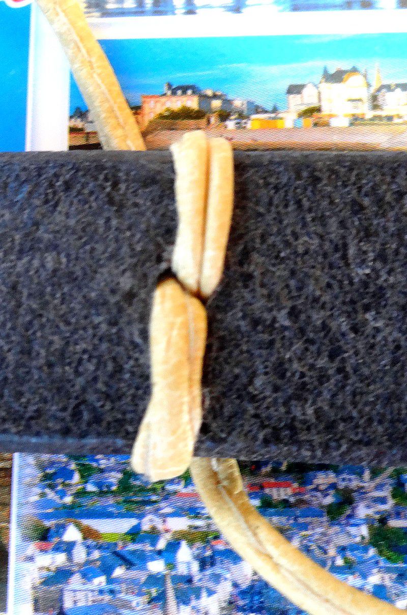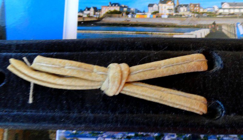 Pour cela il vous faut des ceintures ( moi je les achète aux emmaüs à 0,80€ l'une ) une cordelette en cuir, un frontal pour prendre les mesures et des ciseaux et voilà ce que cela donne, j'ai l'intention de mettre du cuir autocollant afin de cacher les lacets à l'arrière ( on en trouve chez décocuir ) :