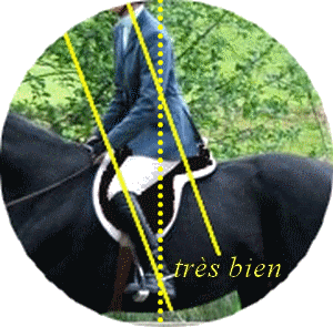 On ne s'asseoit pas loin derrière dans le siège, mais bien devant vers l'enfourchure.