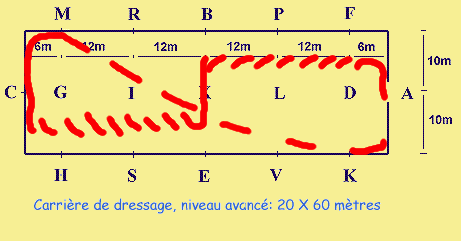 J'ai essayer de commencer ma reprise, mais je bloque, la cata, me reste les galop à faux et les cessions à placer et je ne sais pas où les mettre. En plus je ne sais pas comment sont noté les niveaux de difficulter j'ai l'impression que ce que j'ai fais est trop facile.
