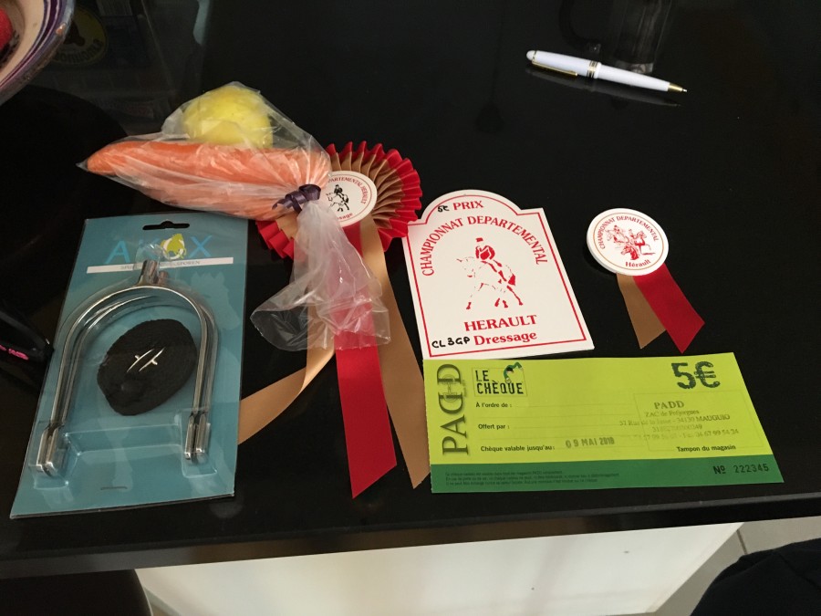 ventdusud en étant 5ieme /25 Avec 7 de classés , j'ai eu plaque et flot , une paire d'éperons , un bon de reduc à PADD (5? il me semble ) , des carottes ????
