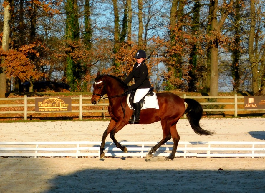 Après pour mon cheval même avec son port de tête haut en général il se deplace assez bien et il tends son dos, c'est juste dans les transitions galop trot qu'il a tendance à lever un peu la tête et à se creuser le dos (j'y travaille )