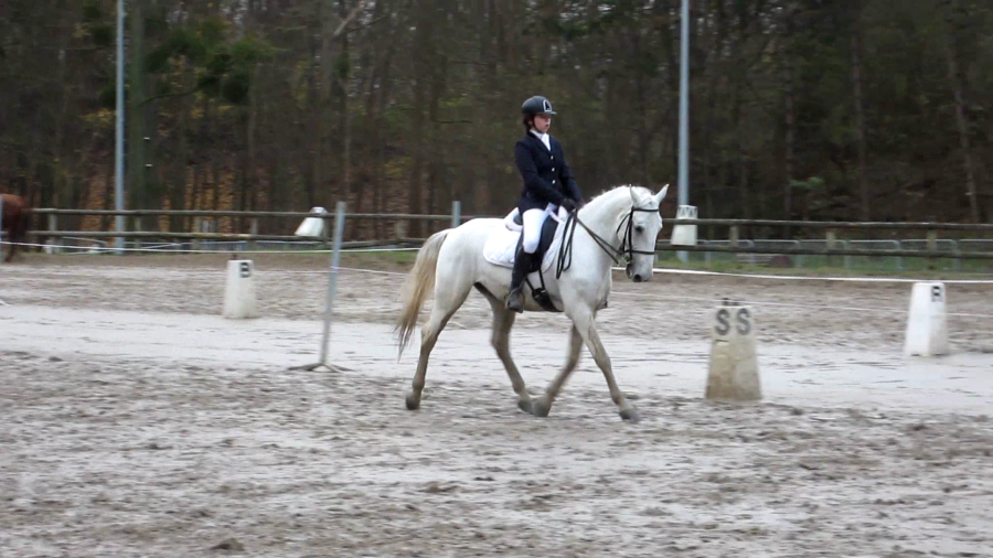 En effet au premier concours je sors en 65% avec le cheval maître d'école que je connais bien. Quili devient infernal en entrant sur le carré, il faut le porter à chaque foulée mais apparemment j'y suis à peu près arrivée puisque j'ai 6,5 en impulsion ^^ et un petit "un cheval n'est pas un tambour" au passage, mais franchement j'ai vu largement pire dans l'épreuve