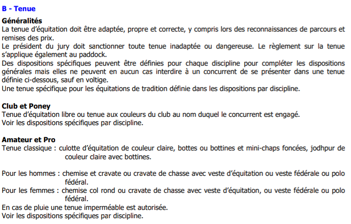Nouvelle petite question, dans le règlement dressage, ils disent chemise col blanc, cravate ...