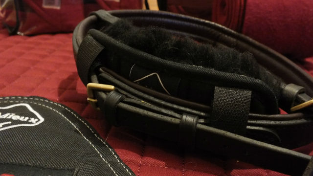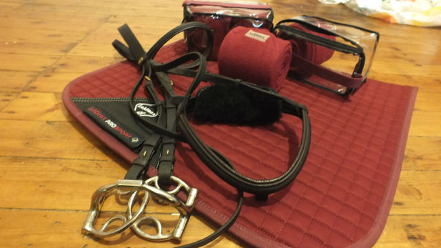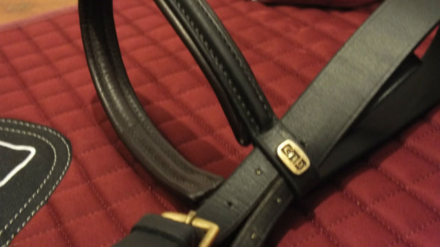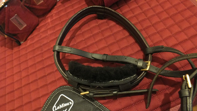 Avec mon filet Stübben que j'avais laissé au placard pour cause de muserole trop fine et trop grande mais qui du coup est de nouveaux de sortie car en plus il a la muserole doublé bordeaux/prune;