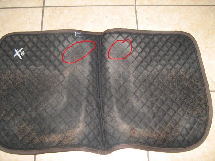 Non je n'ai pas de photos prises de derrière mais je vais m'y atteler! Je viens aussi de laver tous mes tapis donc je vais pouvoir faire une photo des traces de transpiration! Je vais donc refaire des photos des deux côtés de la selle, de derrière et de l'ouverture d'arcade + des traces de transpi!