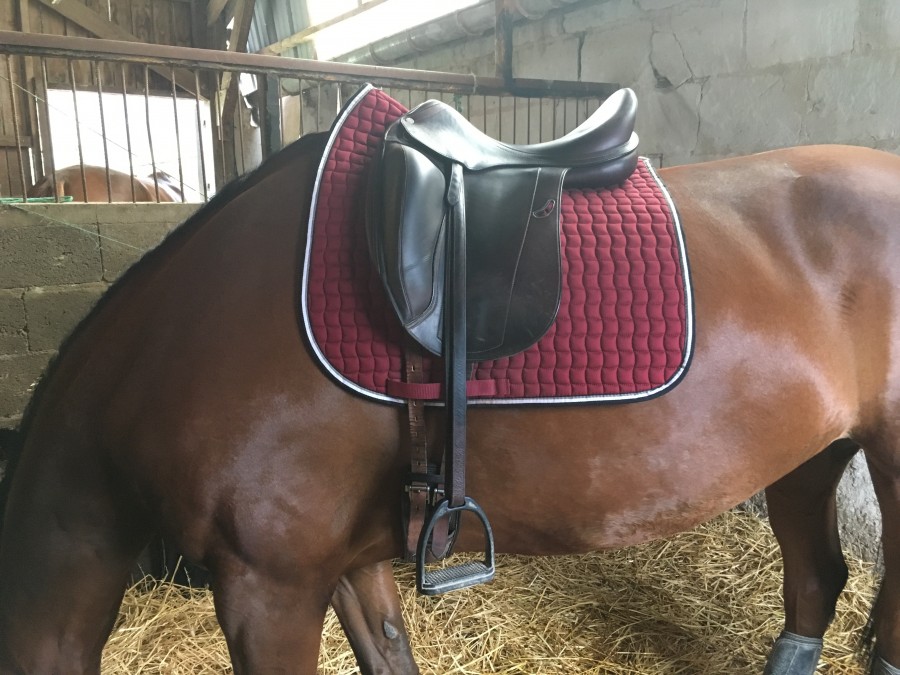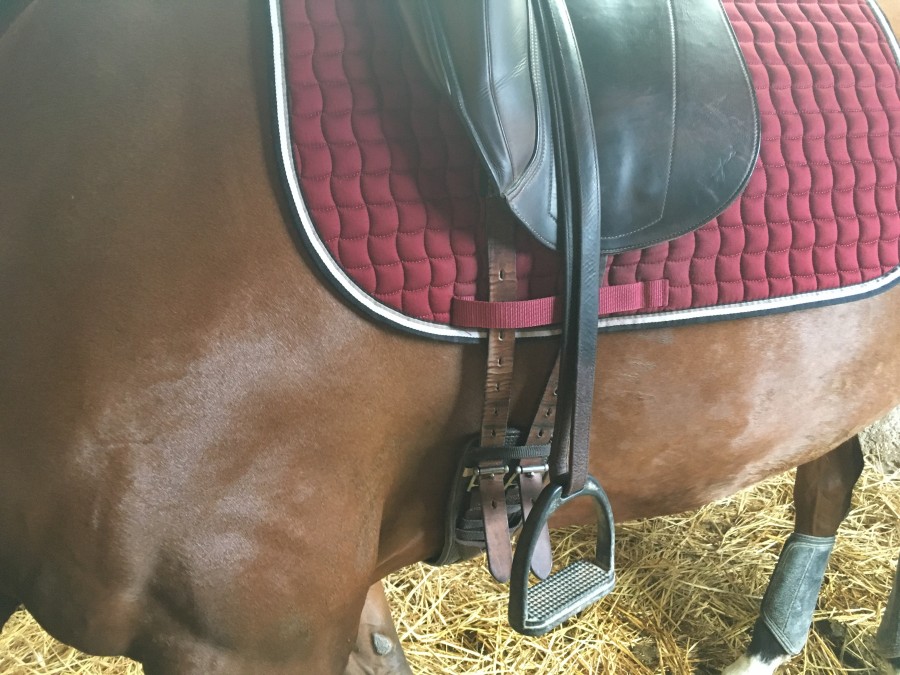 Je joins une photo mais la jument n'est pas sanglée dessus. Après le moment de la photo je remonte d'un trou avant de monter et d'un ou deux trous après être montée.