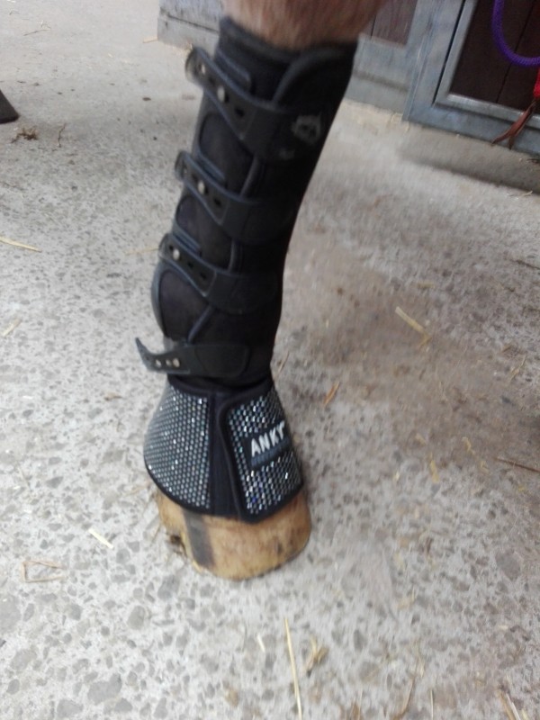 Et pour le dress où on peut faire des plus grosses séances je met des bandes en les posant de manière à ce quelles englobent le boulet pour soutenir un peu plus, avec des sous bandes B&T, à la base pour avoir l'effet de la céramique, bon en vrai je suis pas sure que cela ait un effet de fou. Par contre j'ai remarqué que, comme la carrière où je monte est toujours fraichement arrosé, les bandes forcement deviennent humides... alors que les sous bandes elles sont bien sèches, dc perso j'apprécie bien que mon poney n'ait pas les membres trempées dans les bandes.