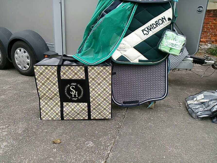 Les bandes Nici sont prévues pour aller avec ce tapis : (C'est pas vraiment la même nuance de vert mais je pense qu'à cheval ça sera plutôt proche).