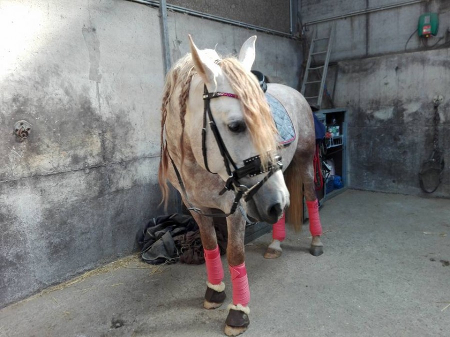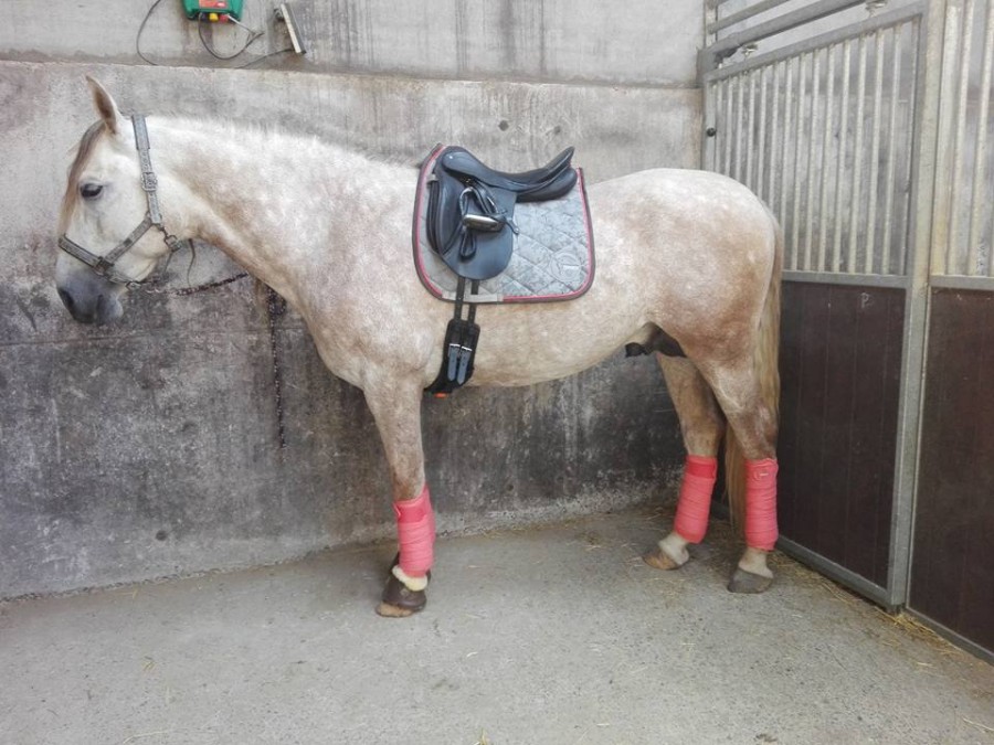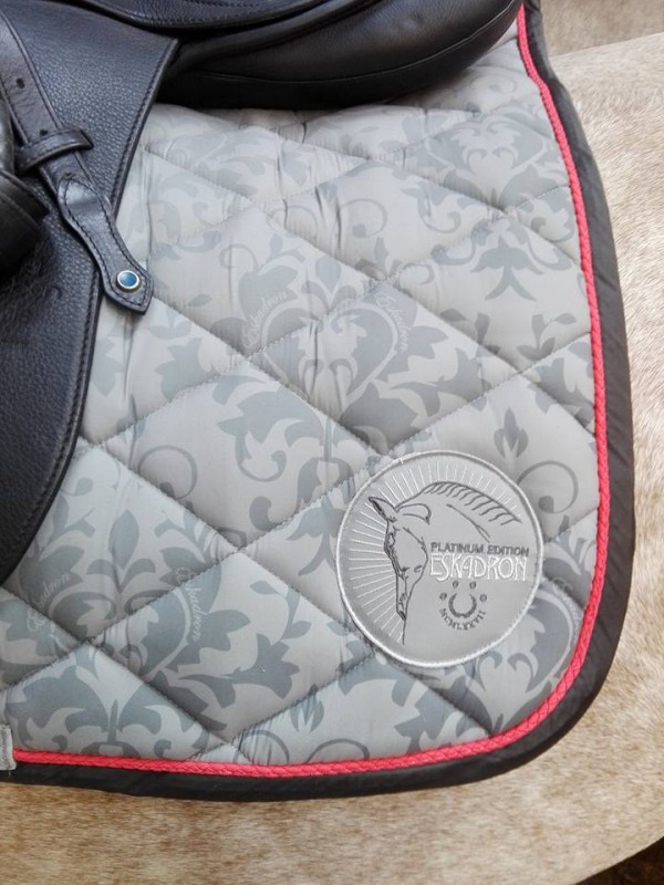 C'est juste que je suis "obligée" de mettre des tapis en teinte de bleu et gris, Judio m'a fait une crise avec le bridon Devoucoux hier donc je dois remettre mon Rossner qui a la muserolle marine et le frontal en strass bleu. Puis comme je porte mon casque Antares gris et marine en ce moment, ce sont plutôt mes couleurs.