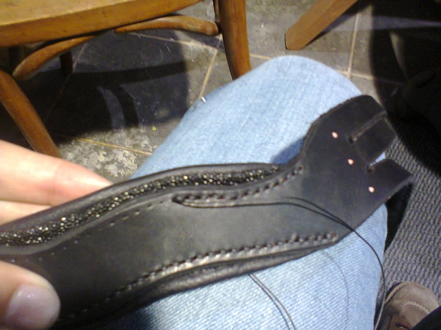 Et ici par contre, sur la têtière c'est un peu flou mais on voir le défaut de couture sur le tournant du haut où je me foire :