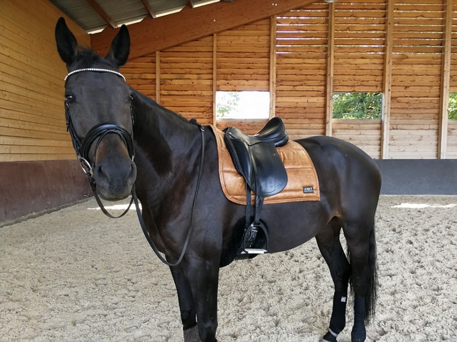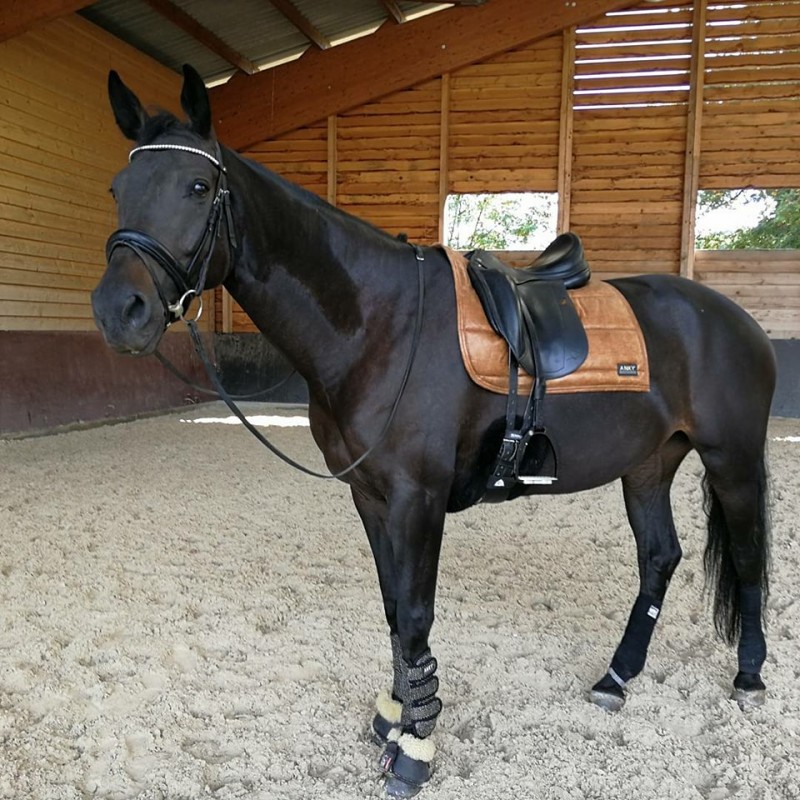 Chose promise, chose du, voici les photos "dressage style" du jour avec Swann motivé à "posé", tapis ANKY Cognac Snake, Guêtres ANKY technical shine (décoration peu robuste, ma jument ce touche beaucoup au niv. antérieur et donc après 2 grosse utilisation il n'y a plus de déco sur les partis qui frotte, du coup maintenant je met de la crème type vasseline pour que ca glisse, et sa marche) et mon Bridon BR.
