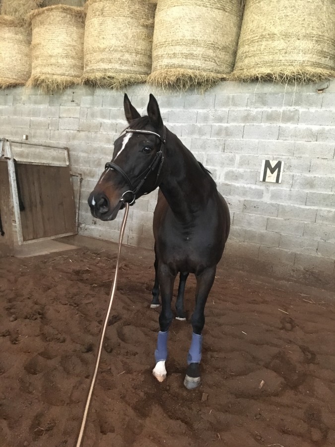 J'ai quand même 10 pantalons simples/silicone aux genoux dont 3 bleu marine ET 2 en fond de peau et vue ma séance raccourcie quand j'ai voulu faire ma maline en mode 100% dressage avec le pantalon fond de peau bas 1) heureusement que j'étais seul aux écuries 2) Ils vont rester au placard en vue de quand j'aurais un niveau suffisant pour survivre plus longtemps avec