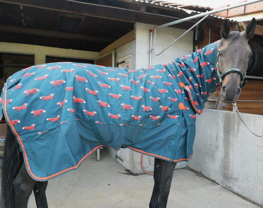 Du coup pas de photo net, que ce soit de Swann (enfin noir sur noir on voie pas grand chose en générale même tondu) et la couverture "magouille" 200G de box c'est la combinaison d'une sous couv. Horseware 200G + une jersey Schockemohle bleu (pour tenir la sous couv.) et la 200G de pré c'est celle avec les renards (d’ailleurs une du forum (dans vos dernier achats) à acheté la même).