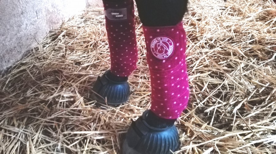 Imagine toi parallèle à son antérieur droit, il faut que tu poses la bande sur le devant du canon, en la roulant sur le membre vers l'arrière, dans le sens des aiguilles d'une montre pour le latéral droit, et sens opposé des aiguilles d'une montre pour le latéral gauche, je peux pas faire plus clair