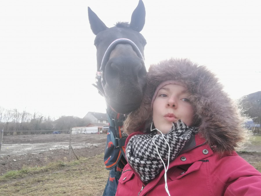 En direct live Swann au paddock et moi son ultime copine de paddock planté comme une chèvre au milieu sinon Swann fait des longueur de clôture jusqu'à ce que je la ramène au box, je n'ai pas eu la motivation de monter :// (méchante cavalière faignante).
