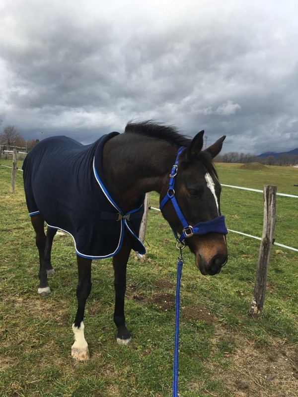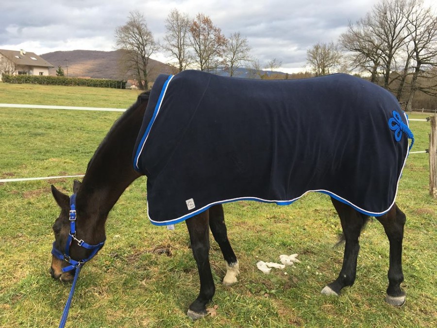 - la polaire greenfield .. alors là je suis amoureuse !Elle est vraiment sublime portée, je trouve que ça lui va juste TROP BIEN ! je l'ai mise avant de seller et après, et pour l'emmener brouter, elle est super chaude, j'avais envie de me mettre dessous lol