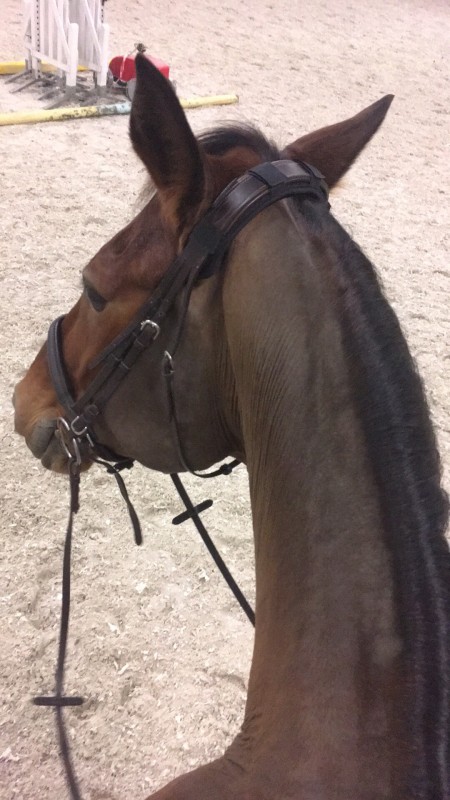 Mais je ne veux pas "toujours" monter en brides c'est presque trop simple, je veux qu'elle soit bien aussi en mors simple, j'ai ressortie mes rênes allemande *pas souple du tout* que je ne met que au pas et un peu au trot car vue qu'elle sont *pas souple du tout* elle m'handicape pas mal, c'est juste histoire de canaliser Swann sur les premiers tour en manège et qu'elle ne m'envoie pas balader car il y a un fantôme quelque part que je ne voie pas, bon elle fait l’effort mais c'est pas magique.