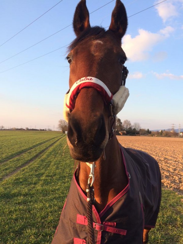 Je m'explique...Cuba avait un joli fourreau de muserolle à son nom, acheté sur un stand. Je l'avais même acheté le weekend avant qu'elle me soit livrée, j'étais toute impatiente à l'époque. C'était à une ouverture de magasin et toutes mes collègues m'avaient félicité pour ma future poupinette. Ca a l'air bête mais moi ça m'avait déjà ému à l'époque.