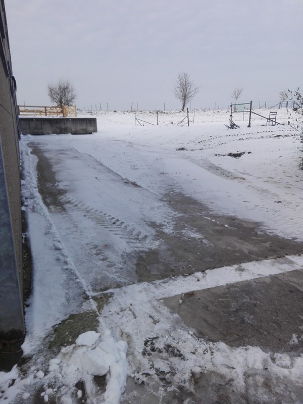 Bon ben heureusement qu'il ne faut pas sortir pour aller dans le manège, c'est complètement verglacé sous la neige donc impossible de mettre un sabot dehors.