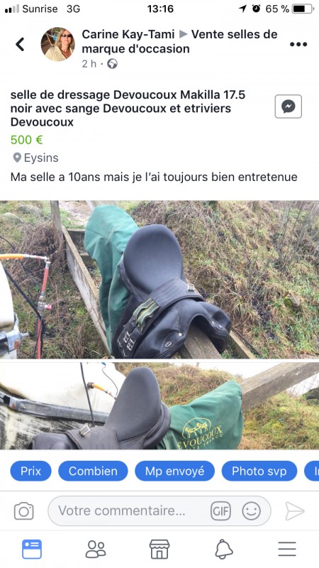 Je veux une Mendia et je peux me la payer mais elle n'irait pas à Amor, elle est trop loin et j'ai déjà une selle de dressage. Ahhhhhh