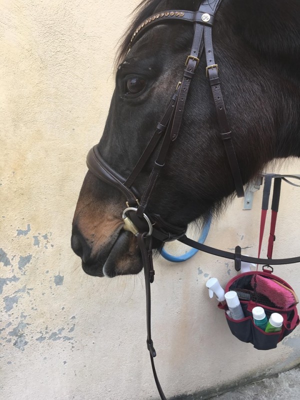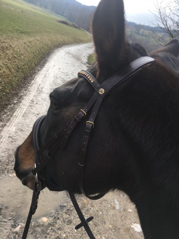 anna1903 a gauche le montant de mors passe derriière le montant de muserolle au fil de la séance ...