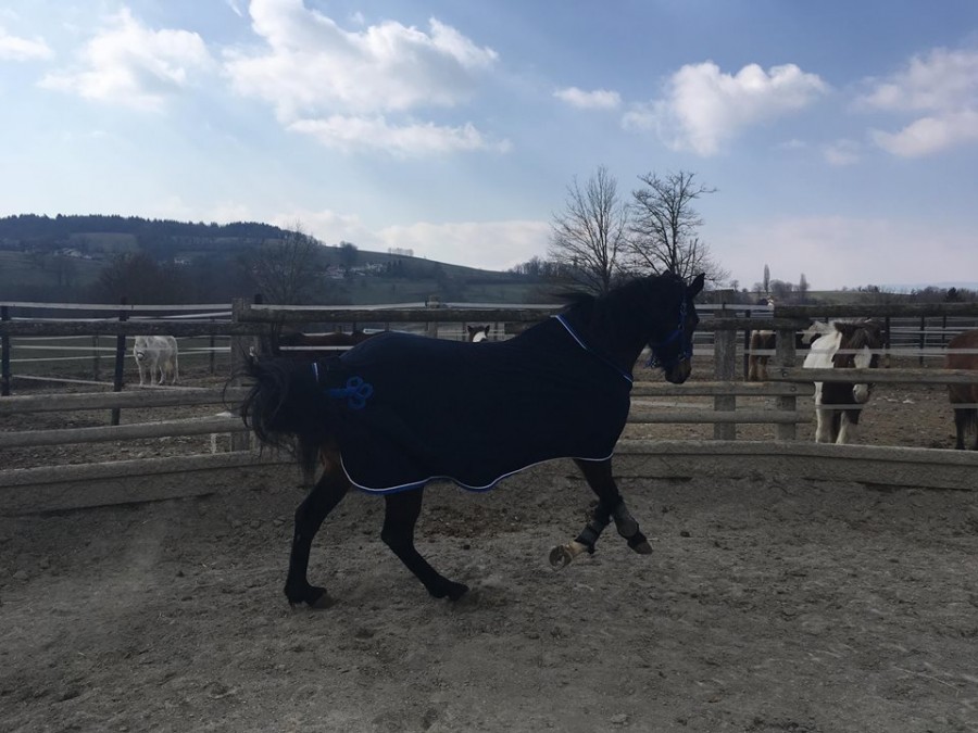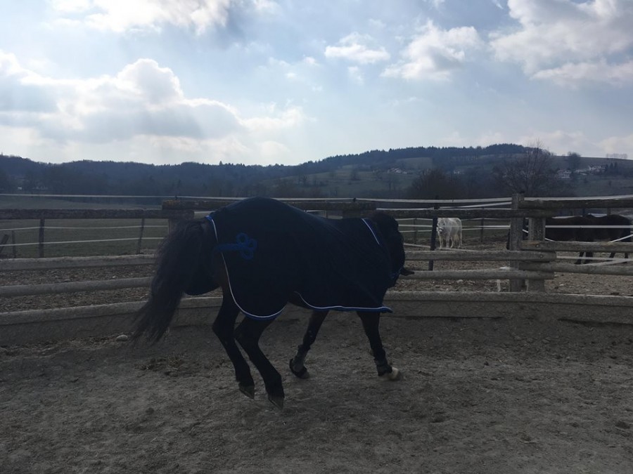 Du coup bébé poney est arrivé dans sa nouvelle pension, il est dans un méga pré de 5 hectares, avec 3 vieux. Il a fait le tour en galopant comme un idiot ^^