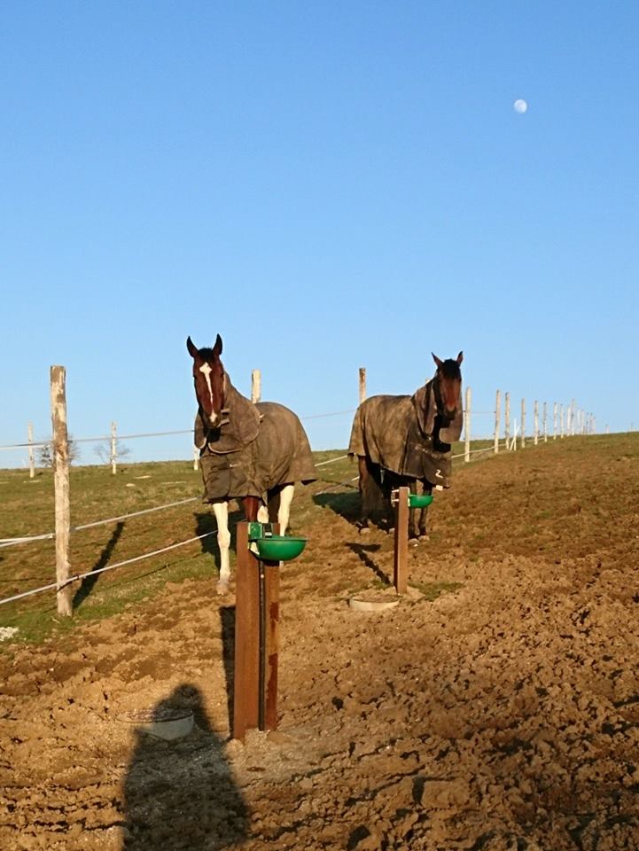 Et oui ta photo je l'ai même screenshoté parce que dans le genre cruchonne, Quincy c'est la seule à pas approcher les abreuvoirs auto au paddock! J'étais toute contente en arrivant ils venaient de les installer mais rien à faire, du coup aux premières journées chaudes de printemps elle se jetait sur l'abreuvoir en rentrant au box, on lui a mis une poubelle à eau. J'ai tout tenté j'ai pris avec mes mains devant elle, mis des carottes, en l'amenant progressivement, j'ai bu dedans devant elle même! Tout le monde l'emmenait lui montrer avant de la lacher mais bref je pense que c'est parce que c'est contre la barrière donc le jus, pour peu qu'elle se soit pris une chataigne la première fois qu'elle a essayé. Et donc la gérante parlait d'en installer un en l'écartant plus de la barrière, et moi je pensais carrément à comme tu as là!