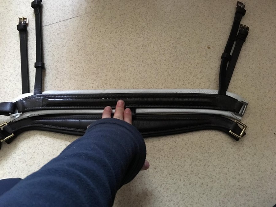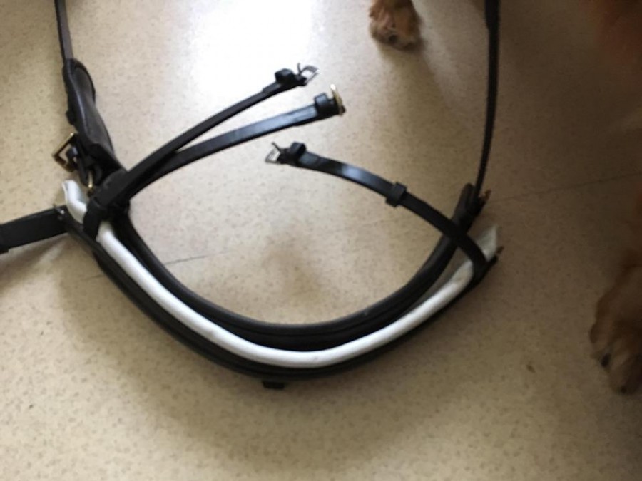 Ayant mes deux filets sous la main, j'ai démonté les muserolles pour voir si notre hypothèse était la bonne, à savoir qu'elle tournait car partie entre les deux montants pas assez grande ...