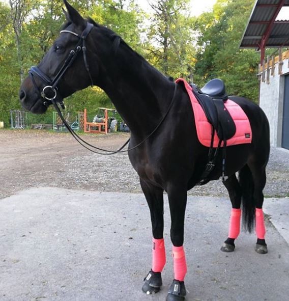 Et si je compte je dois avoir au moins 6 tapis de base rose / 8 tapis avec la bordure-cordes rose et ce en forme CSO ou Dressage (et en bande 4 paires et 2 paires de guêtre (pro choice / dressage coqué)) et j'oublie le couvre rein rose à coeur Nici et .... bref Rose addict mais toujours fashion hein