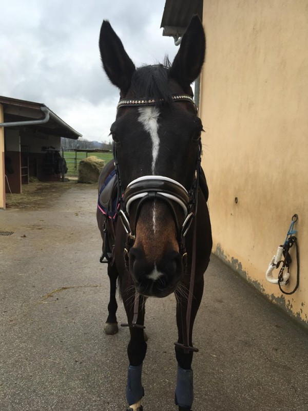 juu_lie J'ai failli acheter une muserolle Devoucoux d'occasion, mais elle était noire... Ca aurait réglé mon souci de sangle brune en moumoute ! Mais finalement, elle était plus disponible. Du coup, je me remets à rêver d'un total look brun sur le blond.