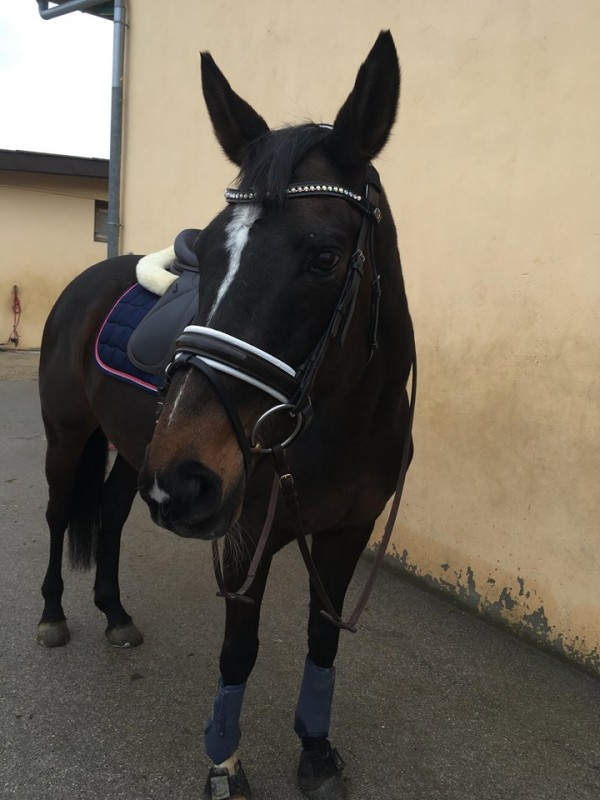 Du coup comme c'était balade exclusivement au pas j'avais mis le mors simple ! mais pour la 1ère fois j'ai mis le noseband (du coup mon filet est plus joli comme ça, sans le passant de noseband vide haha)