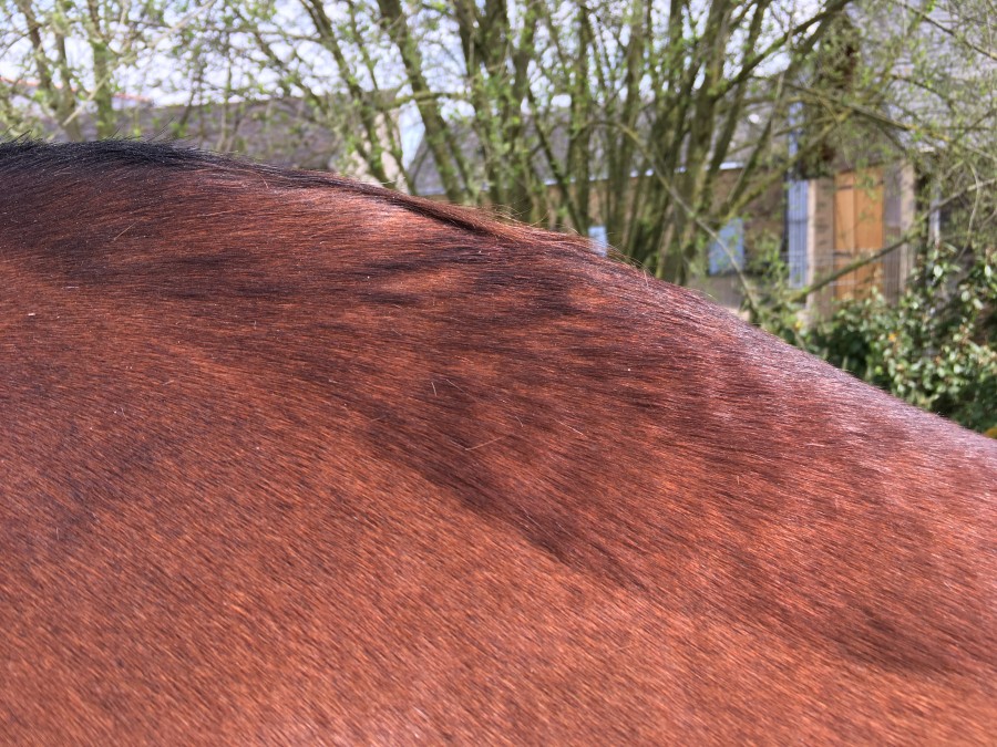 Quincy perd le poil brun qu'il lui reste c'est marrant, elle a le garrot tigré depuis 2 semaines :p