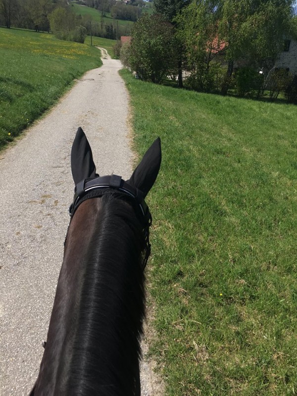 Mais alors quel bonheur elle est gentille au pansage on peut la brosser partout elle dit rien et même elle kiffe et puis alors elle est caaaalme j'ai pu trotter et galoper rênes longues en balade et elle a pas chauffé une seule fois !!