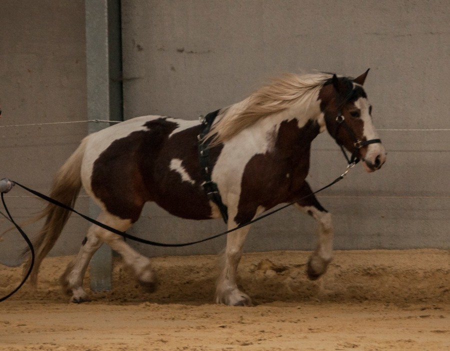 1er le Dobert, la jument n'est pas stable. Elle me tire du coté gauche. 1 tour après hop on change pour le D'yon. Problème taille cob donc après quelques changements on trotte.