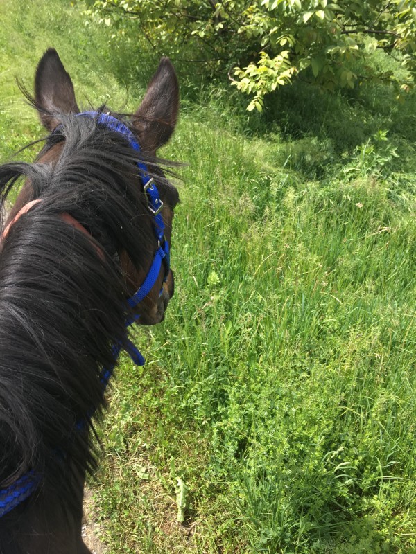 Et je l'ai encore remontée du pré à cru en licol (bon avec le casque cette fois haha)