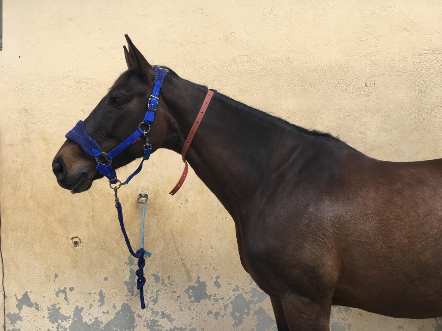 D'ailleurs nous pour changer c'était bleu roi pour le licol d'attache et pour le licol etho pour la séance de longe ^^ (voui du coup maintenant je la longe que en licol etho)