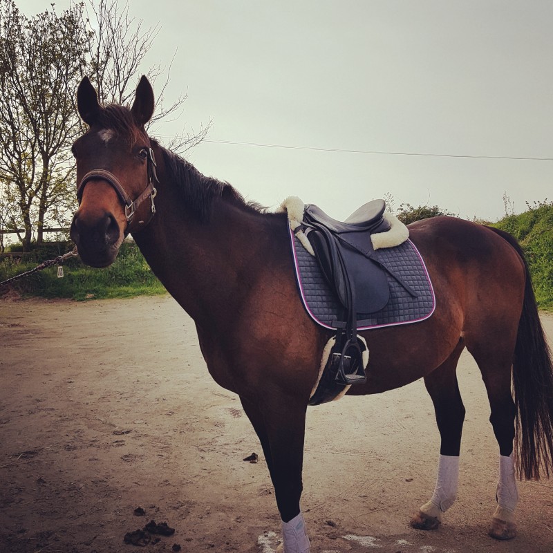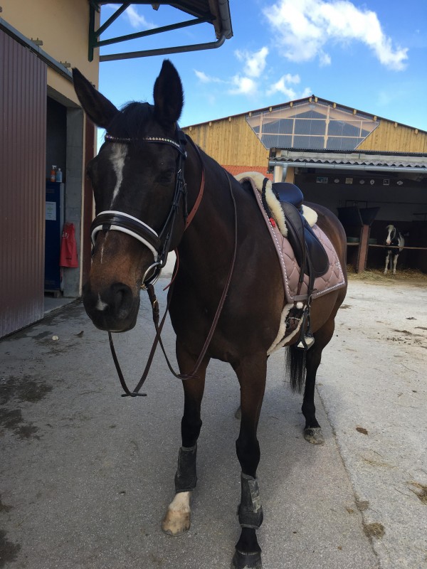 Morgane 25 ans, je dress depuis environ 5 ans avec apache, pur sang de 17 ans.
