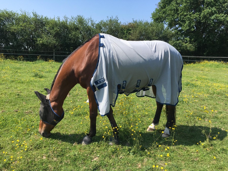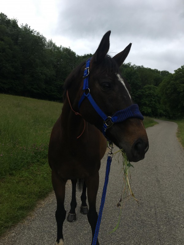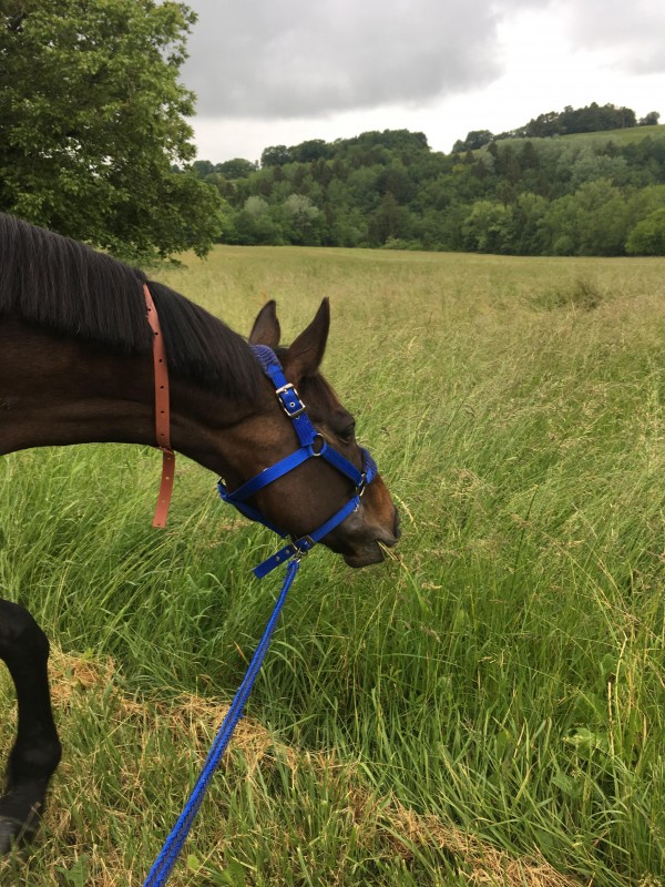 Je voulais lui remettre son masque anti mouches mais vu qu'ils annoncent de la pluie je lui ai pas mis ..