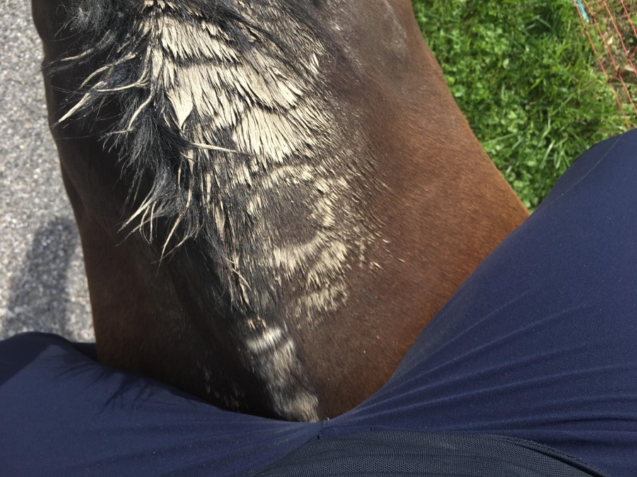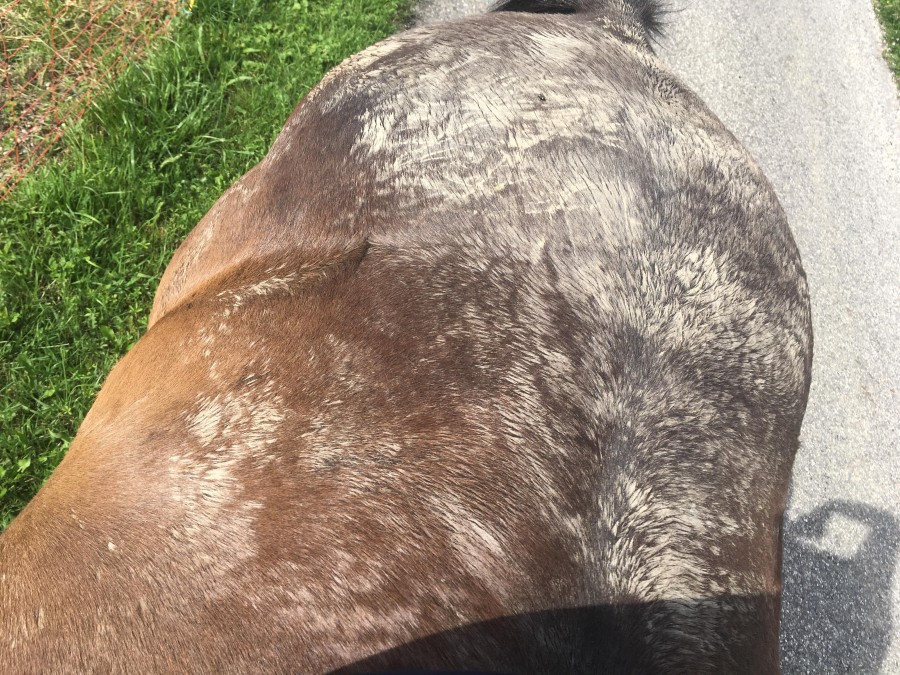 J'en mets principalement croupe/encolure/épaules pour faire briller, parfois sur tout le corps pour aussi avoir un effet anti-poussière et quand je veux un fini au top