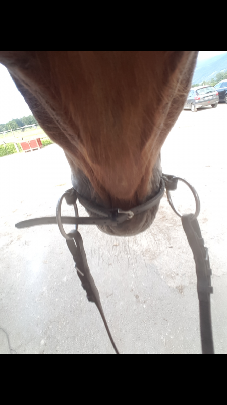 Pareil sur Digi, avec sa grosse tête qui faisait que même en plaquant à la hauteur normale de mors, c'était plus large que sa lèvre inférieure, il passait son temps à essayer de le virer et ça marchait. Ça convenait pas du tout