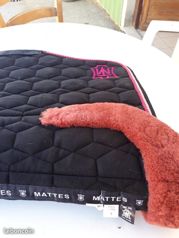 Ah bin si jamais je vends mon Mattes dressage velours eurofit taille L, il est en velours noir avec le mouton rose et logo mattes framboise